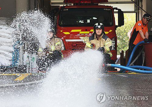 (수원=연합뉴스) 홍기원 기자 = 18일 경기도 수원시 권선구 수원남부소방서에서 남부119안전센터 소방관들이 본격적인 장마철을 앞두고 침수 사고 등에 대비해 동력펌프 등 장비를 점검하고 있다. 2025.6.18 xanadu@yna.co.kr
