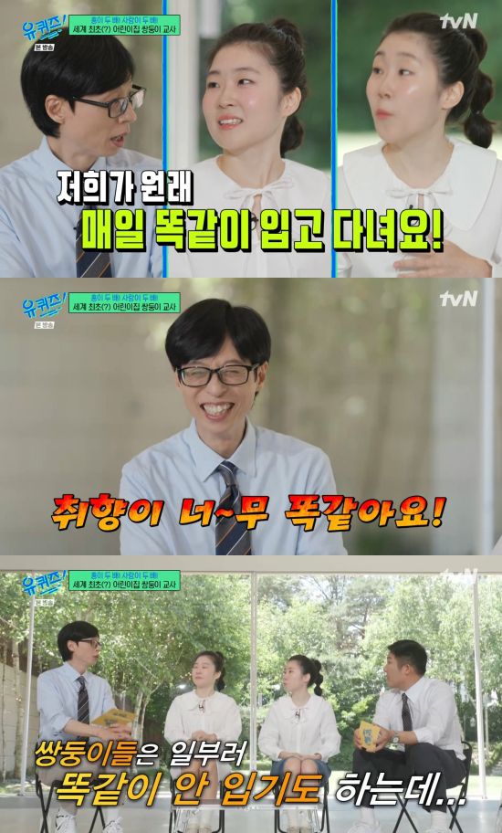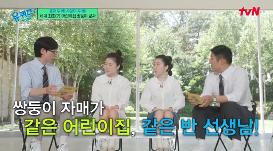 18일 방송된 tvN '유 퀴즈 온 더 블럭'(이하 '유퀴즈')에서는 같은 어린이집에서 교사로 근무하는 쌍둥이 자매가 게스트로 출연한 장면이 전파를 탔다.
