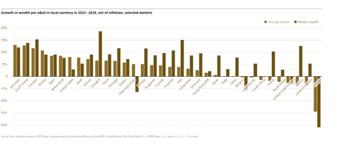 다만 한국은 두 자산의 격차(평균과 중간값간 차이)가 비교적 큰 국가 중 하나로, 이는 빈부격차가 크다는 얘기다. UBS는 이에 대해 “한국은 중산층 확대와 상위 계층의 자산 집중이라는 상반된 흐름이 동시에 진행중임을 보여주는 결과”라고 해석했다.