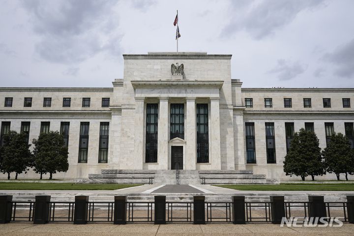 [워싱턴=AP/뉴시스] 지난달 7일(현지 시간) 미국 워싱턴DC 연방준비제도 청사의 로고 모습. 2025.06.19. |