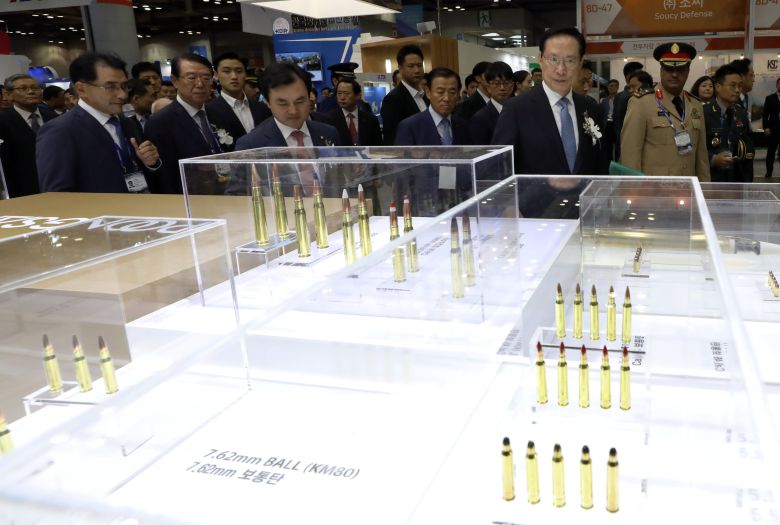 방위산업전(DX KOREA)에 꾸려진 풍산 전시관 모습./뉴스1 |