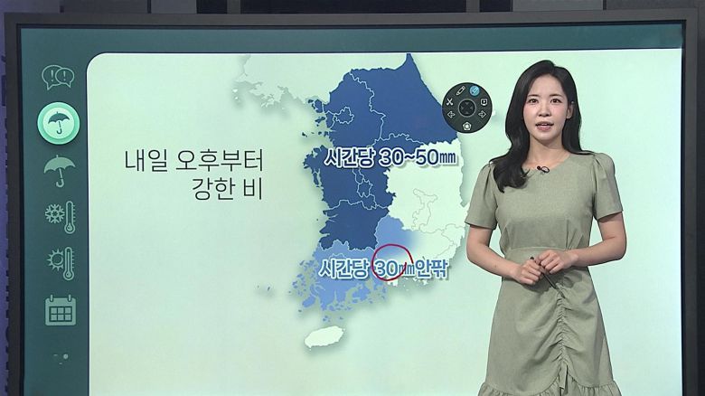 특히 내일 오후부터 중부와 전북에 시간당 최대 50mm의 호우가 쏟아지겠고요.