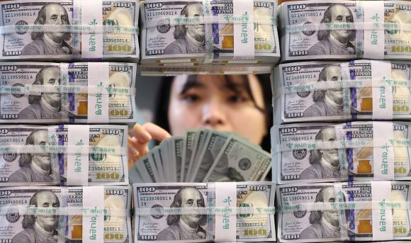 5일 서울 중구 하나은행 위변조센터에서 직원이 미 달러를 정리하고 있다. 2025.6.5 연합뉴스