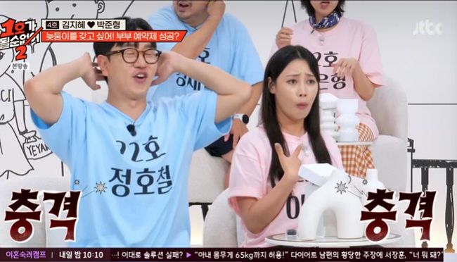 [OSEN=김수형 기자]‘1호가 될 순 없어 시즌2’에서 박준형·김지혜 부부의 수위 높은 멘트와 행동이 방송되며 후배 개그맨들에게 비난을 샀다.