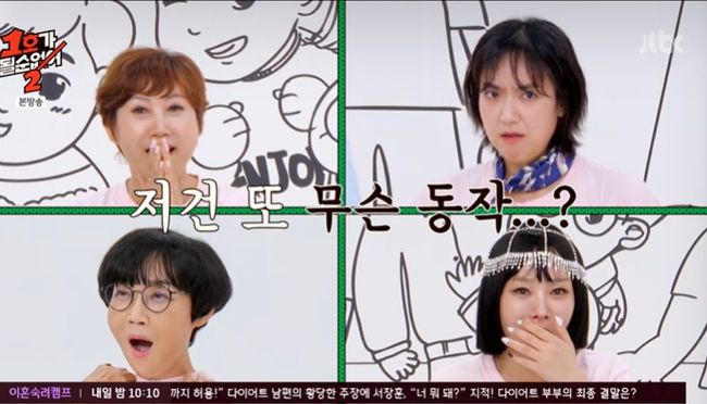 그러나 해당 장면을 지켜보던 개그 후배들은 연신 당황한 표정을 지으며 “이걸 꼭 우리가 봐야 하나?”, “상당히 불쾌하다”, “29금 아니냐, 이제 19금으로 바뀌겠다”며 수위 조절 없는 부부의 방송 내용에 불편함을 드러냈다.