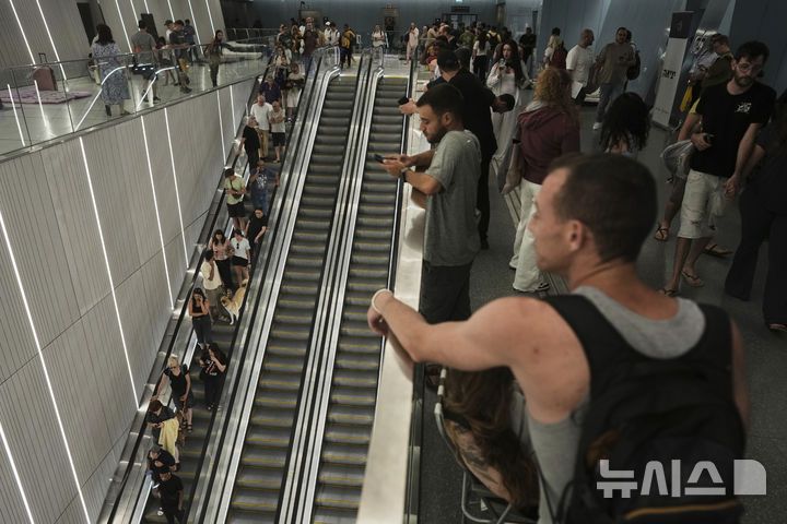 [라마트간=AP/뉴시스] 18일(현지 시간) 이스라엘 텔아비브 인근 라마트간에서 시민들이 이란의 미사일 공습경보가 울리자, 지하철역에 대피해 있다. 2025.06.19.