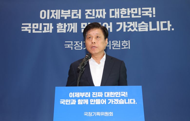 조승래 국정기획위원회 대변인이 19일 정부세종컨벤션센터에서 각 부처 업무보고와 관련한 설명을 하고 있다./연합뉴스 |
