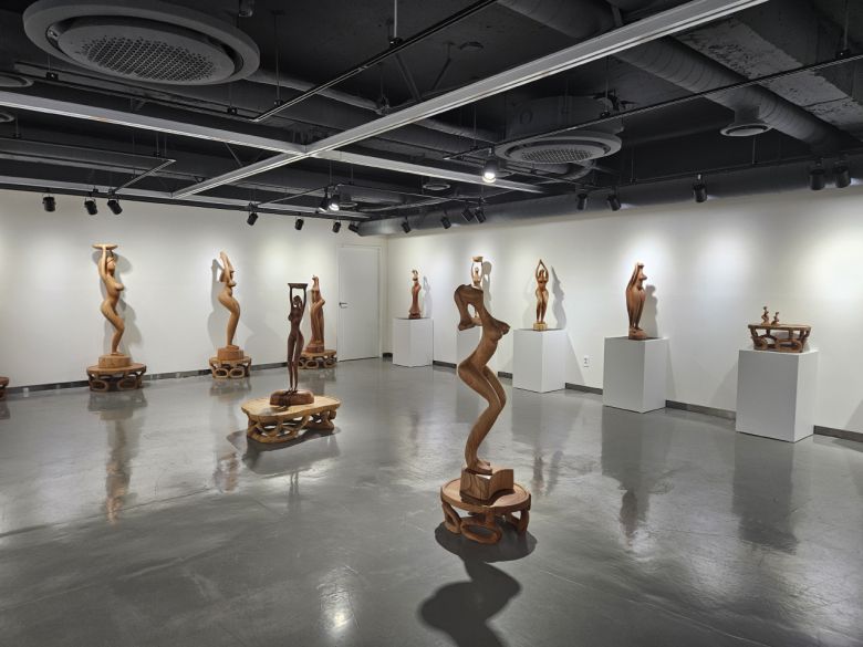 대표 작품인 여인상은 나이테가 드러나게 조각하면서 여인의 몸을 섬세하고 부드럽게 표현한 점이 인상적이다. 이 외에도 다리까지 톱으로 조각했다는 것이 믿기지 않을 만큼 섬세하고 정성이 스며있는 탁자 작품들도 선보인다.