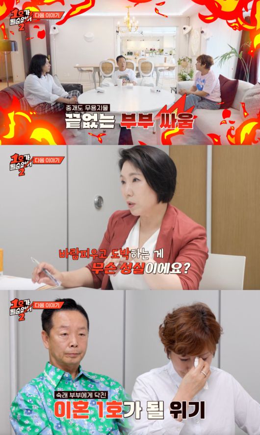 지난 19일 JTBC ‘1호가 될 순 없어2’ 방송 말미 공개된 예고 영상에서 김학해, 임미숙이 이혼 위기에 처한 모습이 공개됐다.