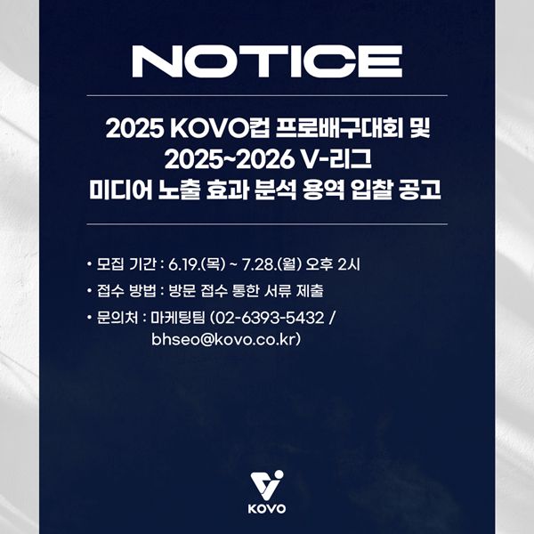 KOVO, 2025 KOVO컵·2025-2026 V-리그 미디어 노출 효과 분석 용역대행 업체 모집