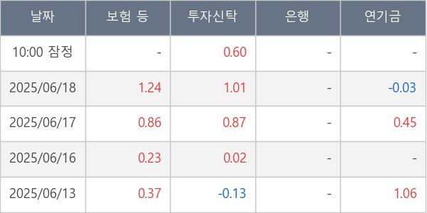 [표] 주요 기관별 순매매량 (단위 만주)