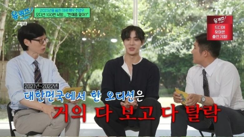 추영우는 "문서 파일 어플에 들어가보니 쪽대본이 200~300개 정도 됐다. 오디션을 적어도 100개는 봤다"고 했다. 유재석이 "2021년부터 22년까지 대한민구에서 한 오디션을 거의 다 봤고 거의 다 떨어졌다?"고 놀라워하자 추영우는 당시 낙방한 작품으로 '슈룹' '펜트하우스' '환혼' 'D.P.' '택배기사' 들을 들며 "자신감이 부족하다" "한예종 맞냐" 이런 이야기를 들었다고 털어놨다.