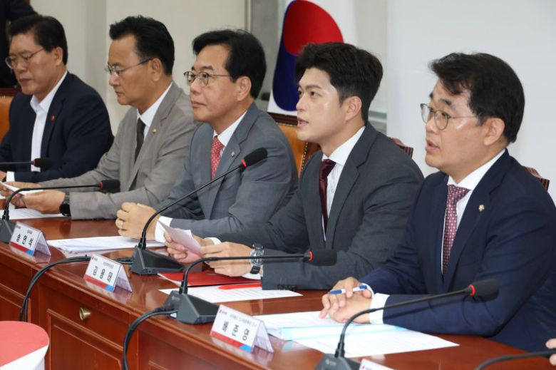 김용태 국민의힘 비상대책위원장이 19일 오전 서울 여의도 국회에서 열린 비리백화점 이재명 정부 인사청문회 대책회의에서 발언하고 있다. 뉴스1