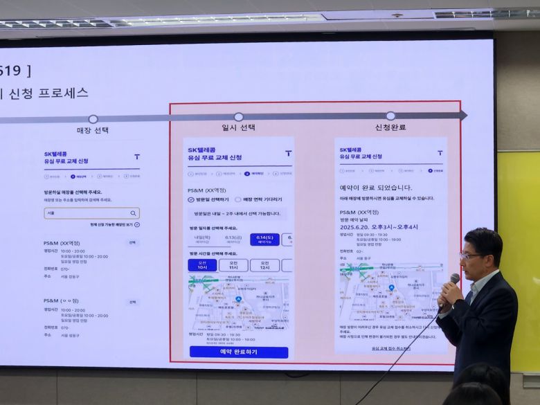 임 사업부장은 "현재 새로 유심 교체를 예약하는 사람은 하루에 약 1만 명 전후인데 매장에서는 하루 20만~30만 명씩 소화할 수 있다"며 "그간 원하는 날짜에 신청할 수 없어 불편을 겪은 고객들도 새 시스템에서는 더 많이 신청하실 거로 본다"고 말했다.