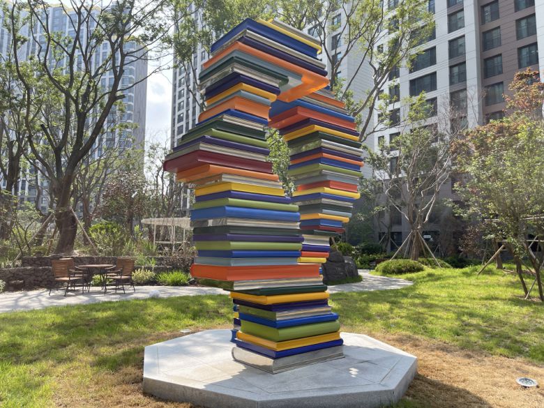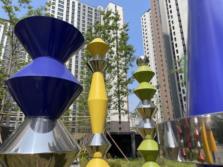 안현곤 작가의 작품들은 단지를 더욱 빛나게 한다. '무한으로의 여행'은 우주와 자연을 통한 형감을 시각적 리듬감, 변화와 반복이라는 조형적 기본 요소를 기하학적 도형을 통해 구현해낸 작품이다.