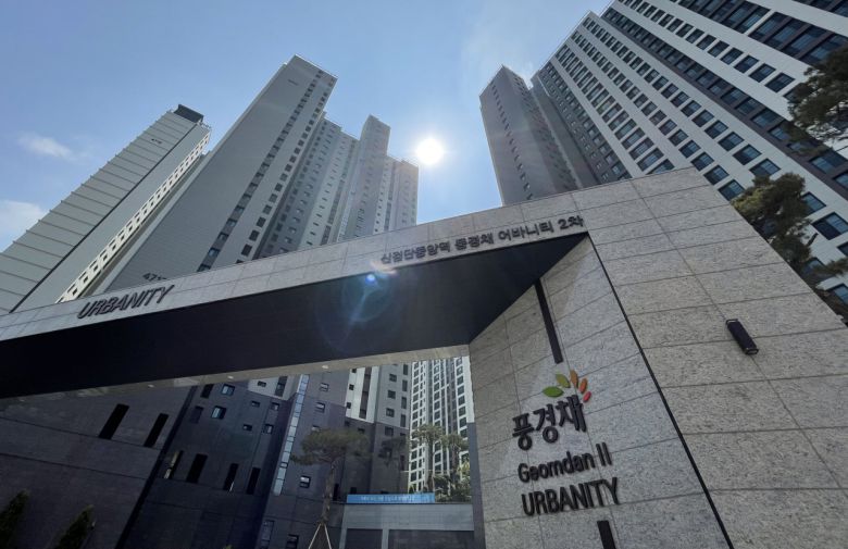 입구를 감싸는 커다란 게이트는 연회색 석재로 마감돼 고급스럽고도 정제된 인상을 준다. 군더더기 없는 직선형 구조는 고층 단지와 자연스럽게 조화를 이루며 입주민을 품 듯 열려 있다.
