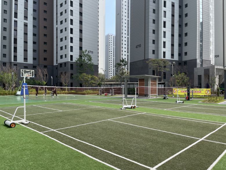 야외에는 신체의 밸런스를 잡아주고 근력을 강화시킬 수 있는 레그프레스, 철봉, 워밍암. 풀웨이트 등의 운동 기구 등도 마련했다. 지하 1층의 커뮤니티 센터에는 키즈카페, 커뮤니티실, 독서실 등을 만들었다.