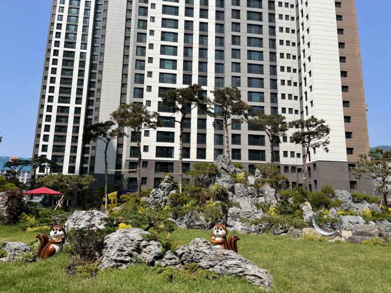조경석 사이로 배치된 다람쥐 모형은 아이들의 흥미를 자극하고, 자연 속 체험형 공간으로서의 기능도 더한다. 감성적인 조경과 실용적 동선이 결합된 공간으로, 단지를 대표하는 시그니처 조경이다.