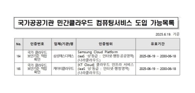 국정원 ‘상’등급 보안검증 통과 민간 클라우드 첫 공시…KT클라우드·삼성SDS