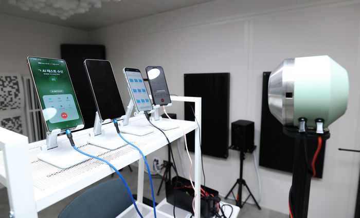 LG유플러스의 AI 음성인식 시험실은 실제 두 명이 각각 통화하는 환경처럼 조성하기 위해 방음벽으로 만들어진 두 공간으로 이뤄져 있다. 때문에 시험에 필요한 외부 소음이나 소리 크기 등을 완벽하게 제어할 수 있다. 통화는 각 방에 설치된 4대의 스마트폰이 서로 짝을 지어 진행되는데, 전화를 걸고 받는 것부터 끝난 이후 결과를 수집하고 지표에 맞춰 정리하는 것까지 모두 AI가 사람을 대신하고 있다.