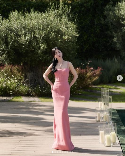 공개된 사진에는 스페인 마드리드에서 열린 명품 주얼리 브랜드의 일정을 소화하고 있는 송혜교의 모습이 담겨 있었다. 긴생머리 스타일로 변신해 화제를 모았던 송혜교는 분홍빛의 민소매 드레스를 입고 포즈를 취하고 있었다. 우아하면서도 아름다운 송혜교의 분위기와 비주얼이 잘 담겼다.