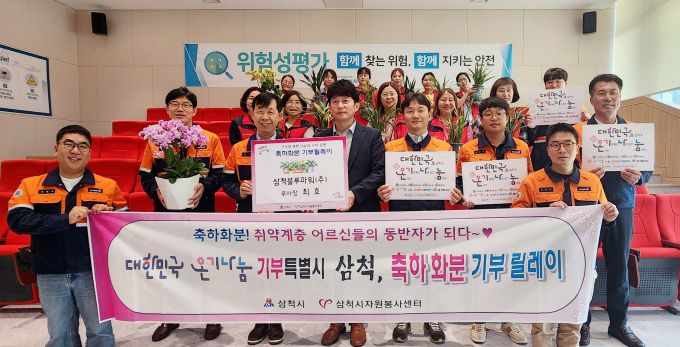 [삼척=뉴스핌] 이형섭 기자 = 강원 삼척시자원봉사센터는 삼척블루파워가 '축하화분 기부 릴레이'에 참여했다고 19일 밝혔다. 이 캠페인은 개인과 기업이 취임·개업 등 경조사에서 받은 화분을 지역사회에 기부하는 시민 참여형 나눔 활동이다.