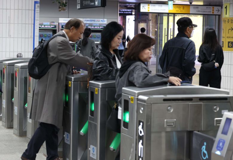 수도권 지하철 교통카드 기본요금이 6월 28일 첫차부터 150원 오를 전망이다. 29일 서울시에 따르면 시는 대중교통 통합환승할인제도를 함께 시행하는 경기도, 인천시, 코레일(한국철도공사)과 최근 회의를 열어 이 같은 지하철 운임 조정안에 합의했다. 추후 서울교통공사 등 지역 운송기관별로 이사회 등 후속 절차까지 마무리하면 요금 인상 시점이 확정된다. 조정된 운임이 적용되면 교통카드를 기준으로 현행 1400원인 수도권 지하철 기본요금은 1550원으로 150원 인상된다. 이날 서울의 한 지하철역에서 시민들이 개찰구를 오가고 있다. 신태현 기자 holjjak@