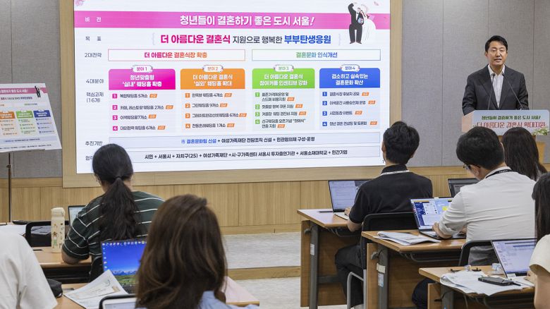 표준가격제에 맞춰 결혼식을 올리는 예비부부에게 스드메 비용을 최대 100만 원 지원하고, 행복 스토리를 제출한 커플 100쌍을 선정해 생활·육아용품 구입에 쓸 수 있는 100만 원 상당의 쿠폰을 지급하기로 했습니다.