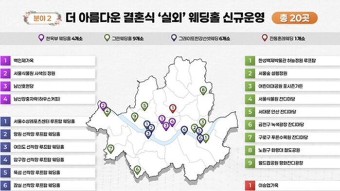 서울시는 소규모 결혼식을 원하는 예비 신혼부부의 취향에 맞는 공공 예식장 40곳을 추가로 조성하는 내용의 '더 아름다운 결혼식 확대 지원계획'을 발표했습니다.