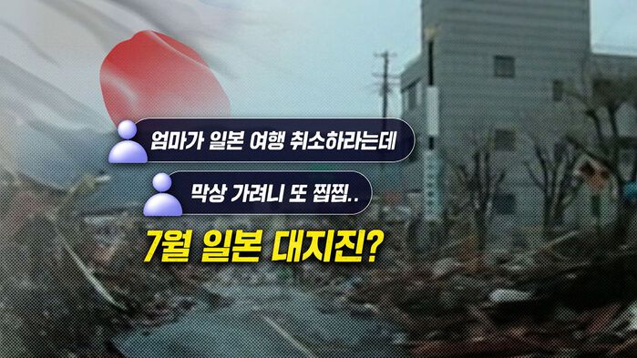 그런데 7월로 특정된 일본 대지진설이 빠르게 퍼지면서 온라인 커뮤니티에서는 이미 예약한 항공권을 가족이 취소하라고 했다거나, 여행이 꺼려진다는 등의 우려의 목소리도 나오고 있습니다.