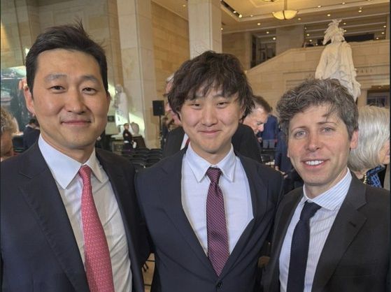 도널드 트럼프 미국 대통령 취임식장에서 알렉산더 왕 스케일AI 최고경영자(CEO·가운데)가 김범석 쿠팡Inc 의장(왼쪽), 샘 올트먼 오픈AI CEO와 함께 찍은 사진. 알렉산더 왕 SNS 캡처 |