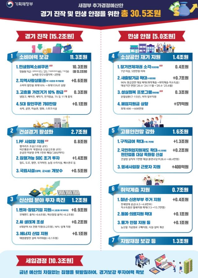 이번 추경에서 정부가 중점을 두는 것은 경기 활성화를 통한 민생회복이다. 정부는 여기에 총 11.3조원을 투입한다.