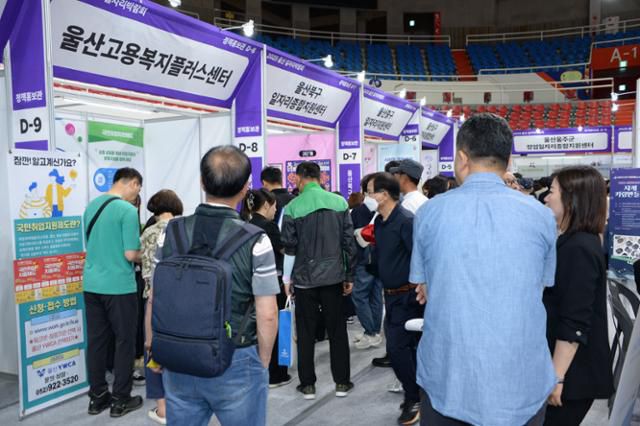 지난 18일 울산 중구 동천체육관에서 열린 '2025 울산 일자리박람회'에서 구직자들이 상담을 받기 위해 기다리는 모습. 뉴시스 |