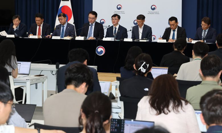 기획재정부 임기근 2차관이 지난 18일 정부세종청사 민원동 공용 브리핑실에서 새 정부 추가경정예산안에 관해 설명하고 있다. /연합뉴스