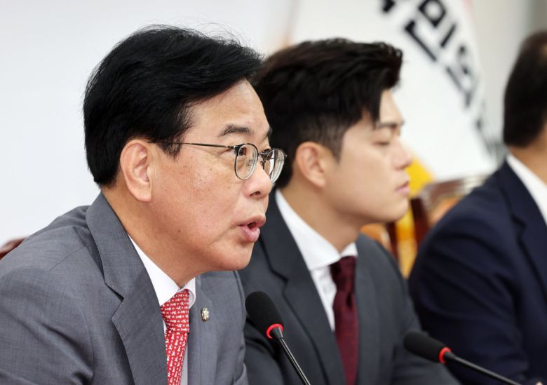 송언석 국민의힘 원내대표가 19일 오전 서울 여의도 국회에서 열린 ‘비리백화점 이재명 정부 인사청문회 대책회의’에서 발언하고 있다. 2025.06.19.  뉴시스