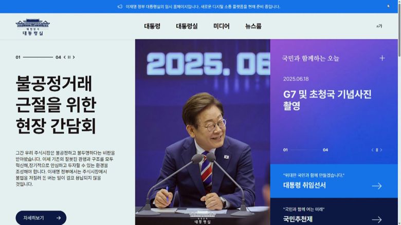 이재명 정부 출범 보름 만에 대통령실이 임시 홈페이지를 개통했습니다. 다만 윤석열 정부가 홈페이지 데이터를 볼 수 없게 처리해 작업이 어려워, 정식 개통까지는 석 달 넘게 더 걸릴 예정입니다.