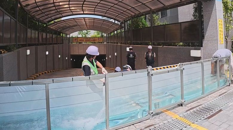 침수 위험이 있는 아파트 지하 주차장 입구에 폭 7m 물막이판을 설치했습니다.