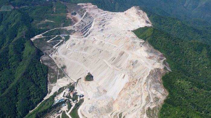 백두대간 보호법상 보호지역으로 지정된 곳이지만 광산 개발 예외 조항을 인정받아 석회석 노천 채광이 한창입니다.