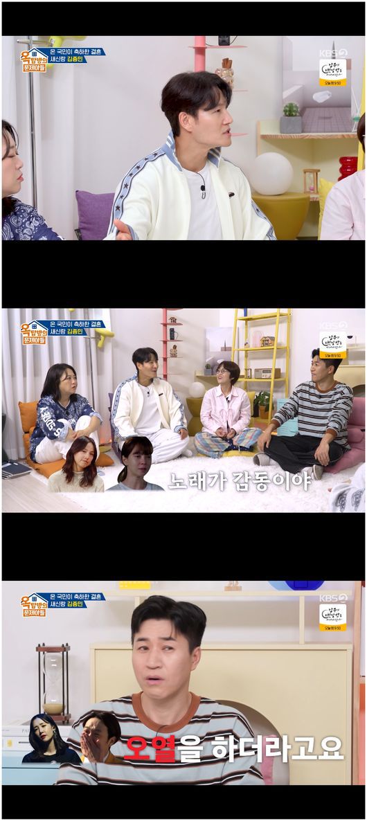 19일 방영한 KBS2TV 예능 ‘옥탑방의 문제아들’에서는 4월 결혼한 코요태 김종민이 등장했다. 하객들의 떠들썩한 웃음과 감동적인 눈물이 덩달아 화제가 됐던 김종민의 결혼식. 김종민은 신랑 행진부터 하객 떼창을 만들어 화제가 됐었다.