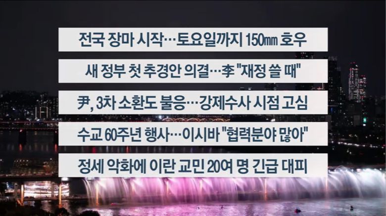 전국이 본격 장마철에 들어가면서 주말인 토요일까지 내륙에 최대 150㎜의 호우가 내릴 것으로 예상됩니다.