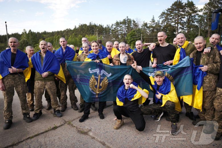 러시아에 억류되어있던 우크라이나인 전쟁 포로들이 양국 간 포로 교환 합의에 따라 23일(현지시간) 우크라이나에 송환됐다. 2025.05.23 ⓒ 로이터=뉴스1 ⓒ News1 정지윤 기자 |