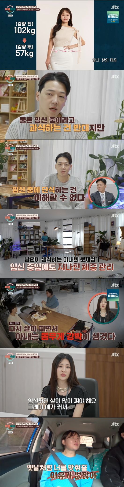 102kg에서 57kg까지 살을 뺀 와이프는 본인을 공주라고 칭하기도. 살을 빼기 전에는 남편에게 하나부터 열까지 다 해주며 맞춰줬다는 아내는 “옛날처럼 너를 맞춰줄 이유가 없잖아”라며 살을 빼고 태도가 바뀌었음을 언급했다.
