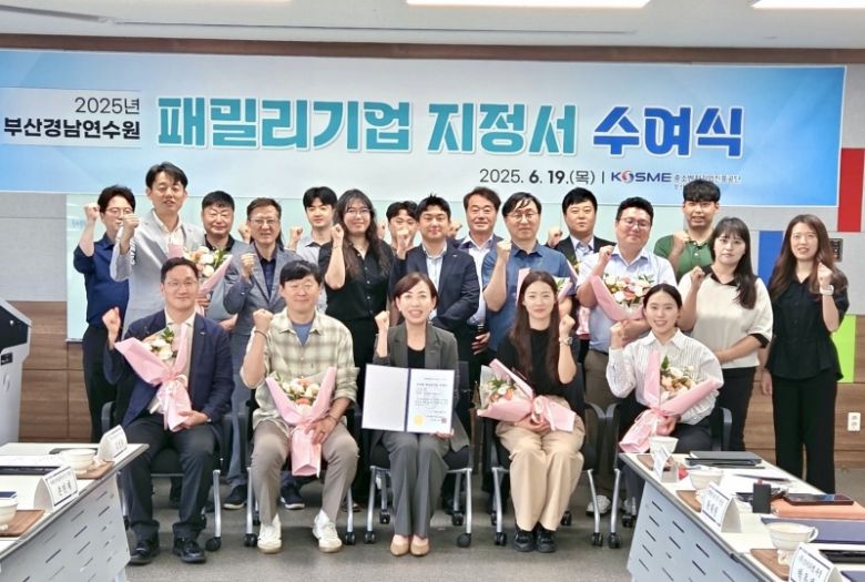 중소벤처기업진흥공단 부산경남연수원(원장 정민정)은 19일 신미정공(대표 소순민)을 비롯한 지역 내 12개사를 ‘패밀리기업’으로 신규 지정하고 지정서 수여식을 개최했다.