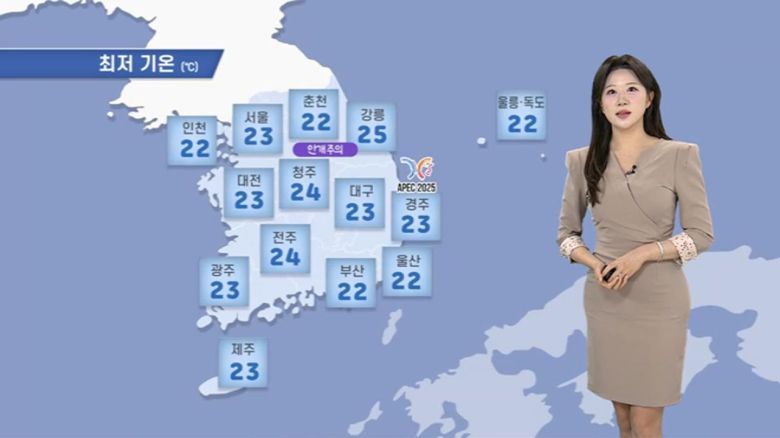 최저기온 서울은 23도, 대전과 대구 23도, 청주와 전주 24도로 출발하겠고요.