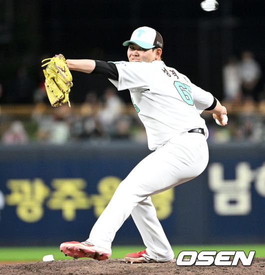[OSEN=광주, 이대선 기자] 19일 오후 광주-기아 챔피언스필드에서 2025 신한 SOL Bank KBO리그 KIA 타이거즈와 KT 위즈의 경기가 열렸다.KIA는 올러, KT는 배제성을 선발 투수로 내세웠다.8회초 KIA 성영탁이 역투하고 있다. 2025.06.19 /sunday@osen.co.kr