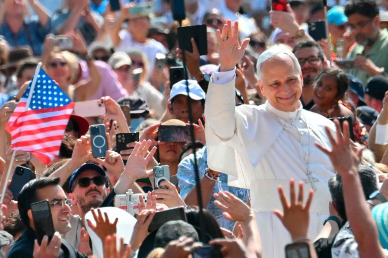 지난 18일 바티칸 성 베드로 광장에서 교황 레오 14세가 군중에게 손을 흔들며 인사하고 있다. /AFP 연합뉴스 |