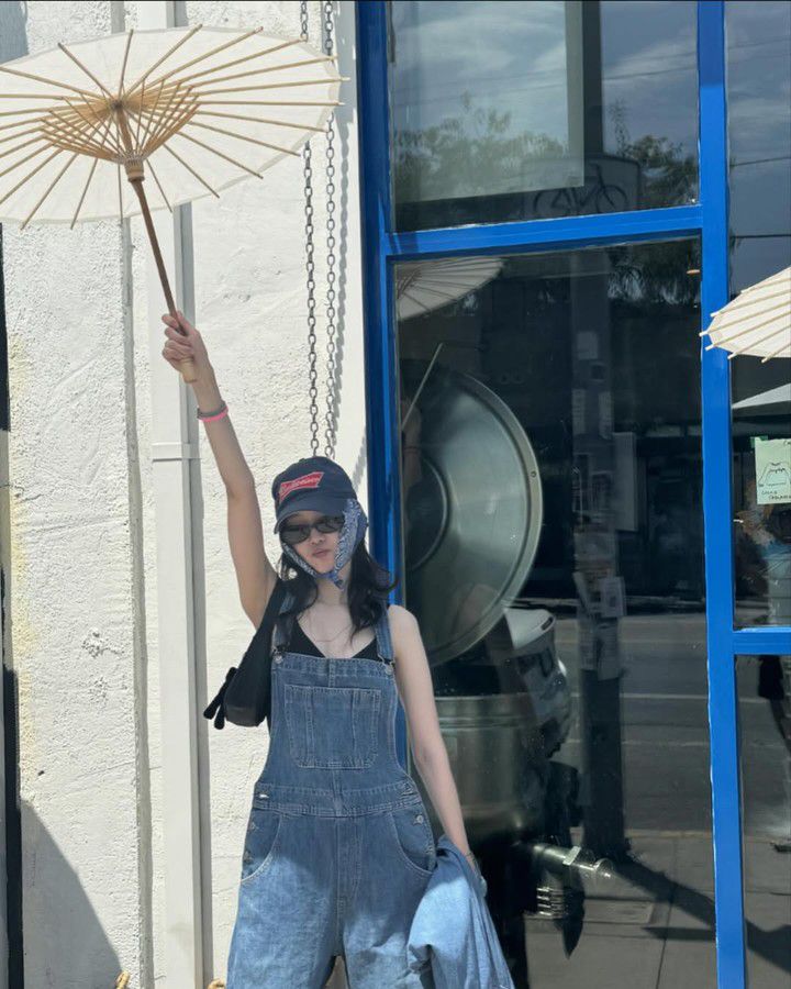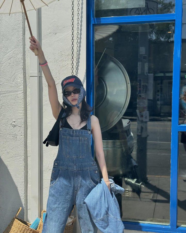 마지막 사진에서는 제니가 레드 색상의 헤어 스카프를 활용한 패션을 선보였다. 레드 헤어 스카프는 강렬한 느낌을 주는 동시에 개성 있는 스타일을 완성시켜 준다. 패셔너블하면서도 활동적인 이미지를 강조하는 데 완벽한 아이템이다.