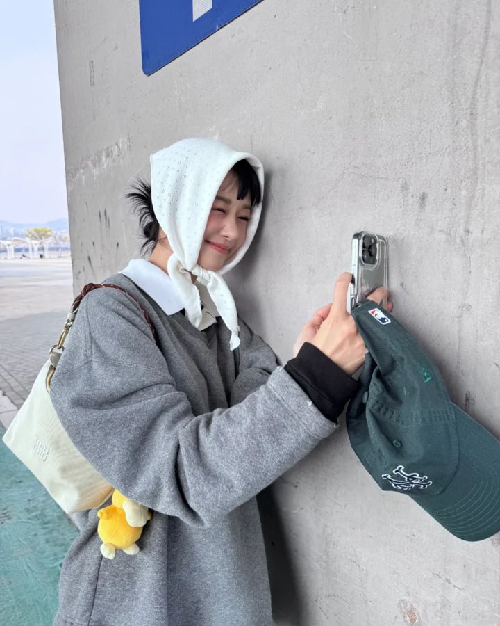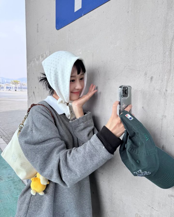 문가영은 색상과 디자인이 부드럽고 유니크한 헤어 스카프를 착용한 모습을 볼 수 있다. 여기에 깔끔한 톱과 캐주얼한 무드를 더해, 그야말로 여유로움과 세련됨을 동시에 겸비한 스타일을 완성했다. 헤어 스카프가 얼굴과 헤어라인을 부드럽게 감싸며, 전체적인 스타일에 포인트를 준다.