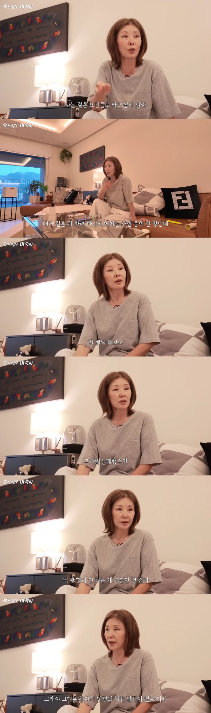 이미숙은 "나는 결혼 요만큼도 하고 싶지 않다"면서 "댓글에도 '결혼 뭐하려고 하냐'더라. 나는 결혼 뭐하려 하냐고 외치는 사람 중 한 명이다"라고 말했다.