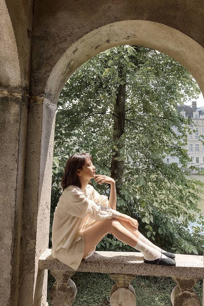 윤승아는 슬리브리스 원피스에 클래식한 메리제인 슈즈, 양말을 더해 레트로한 감성을 가미했고, 다른 컷에선 반팔 티셔츠에 플레어 스커트를 매치해 우아하면서도 따라 하기 쉬운 바캉스룩을 선보였다. 컬러는 차분하게, 라인은 부드럽게 잡아낸 센스가 돋보였다.